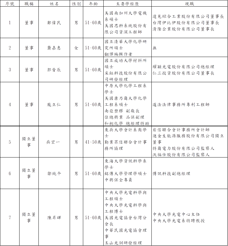 為了強化公司治理,本公司共計有董事 7 席,董事會成員之專業背景及相關經驗,涵