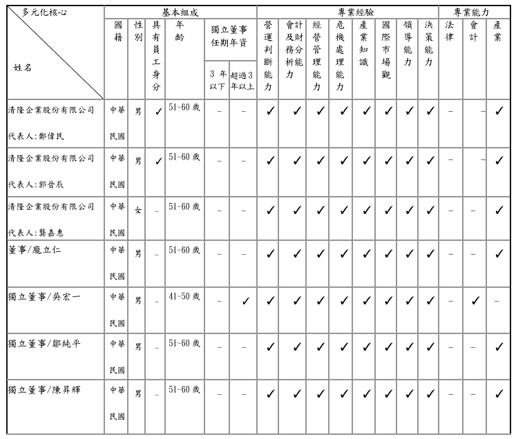 識意見,促使公司之經營與整體平衡發展,並已納入女性董事成員。除此之外,董事會成